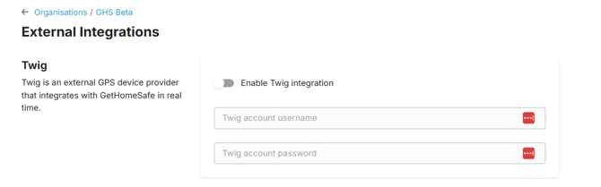 After the Twig setup you will need to enable Twig as an integration on the GetHomeSafe platform.