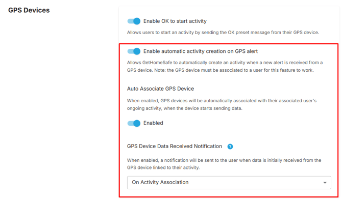Navigate to Organisation > General Settings > GPS Devices, and locate and enable the following two settings: