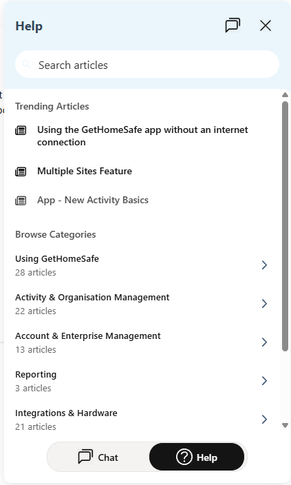 - Select Help to search and browse articles manually.