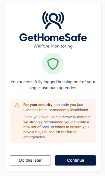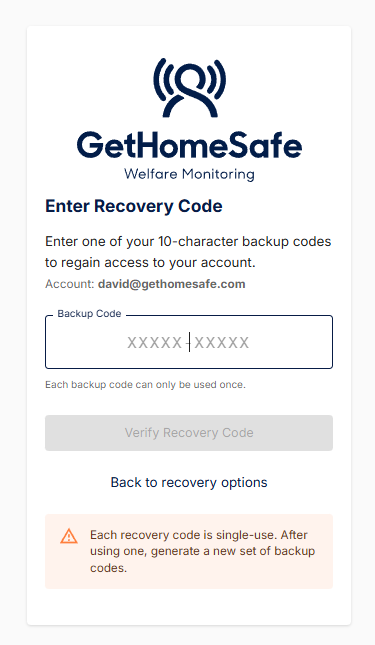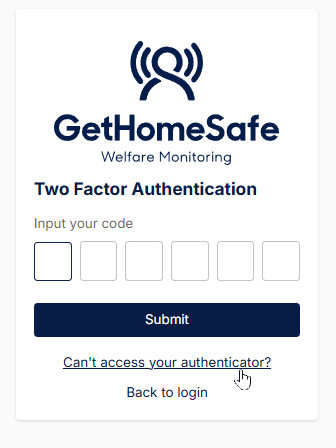 Methods for recovering your two factor authentication (2FA) for GetHomeSafe.